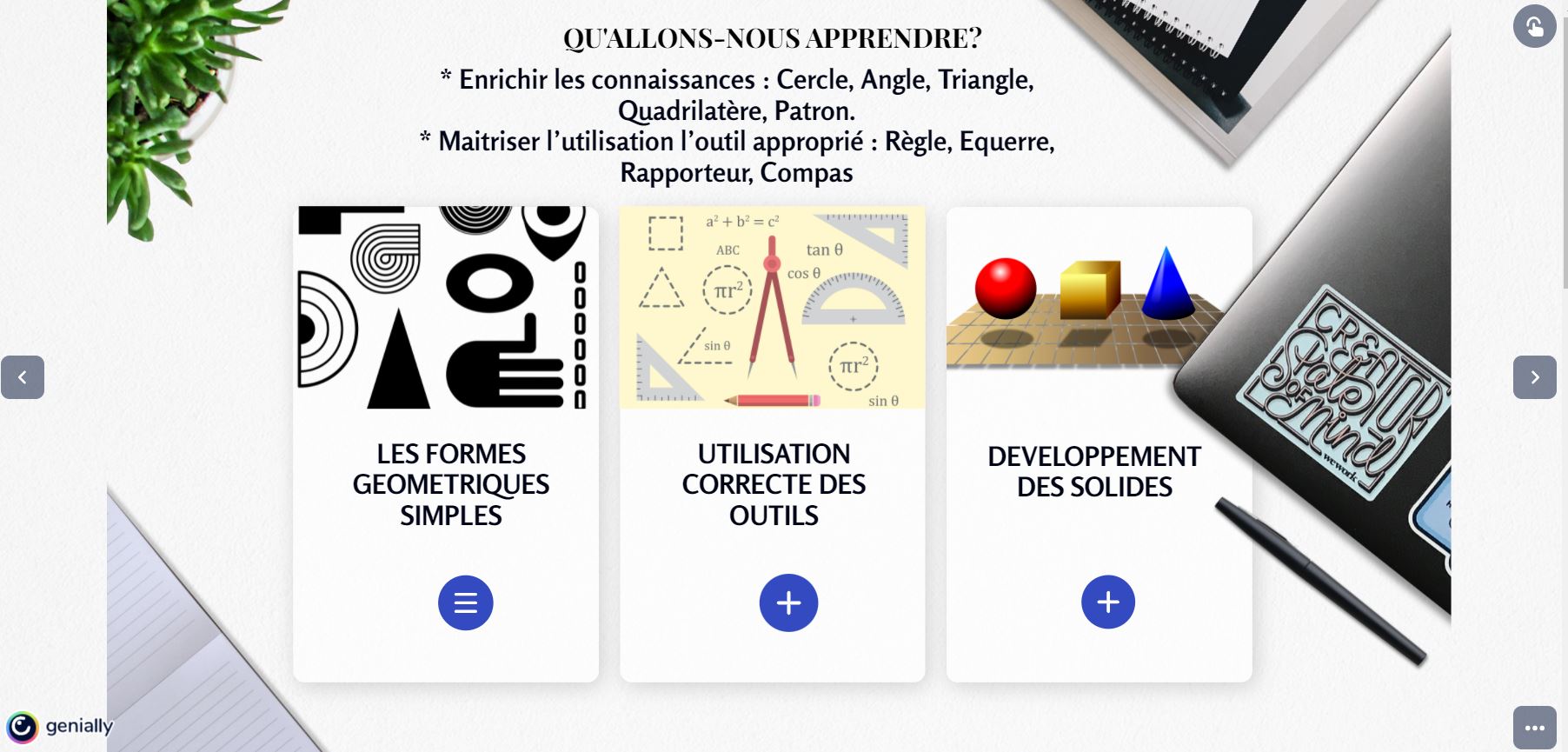 Cette section consistera à définir les angles, le cercle, les triangles, les quadrilatères d'une part et à maitriser l'utilisation des outils de construction de ces différentes figures d'autre part.